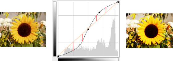 We create anchors and segments on the curve and we move them to shape the curve. This curve maps input tones of the active layer or selection to output tones.