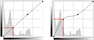 Making the curve more horizontal forces all the input tonal range to occupy a shrunk output tonal range.