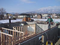Here is what it looked like when we got there... A bit of snow! The first one shows the exterior insulation that we put on while the house was being backfilled. (01/27/01)